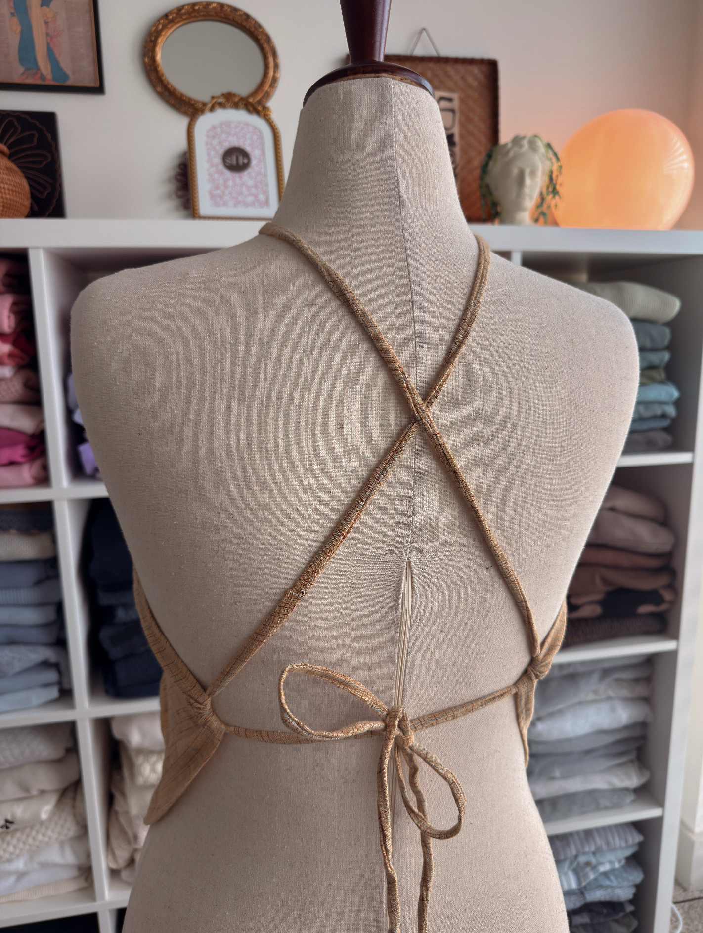 This piece is a one of a kind piece handmade from thrifted and reclaimed materials. Designed and sewn by me.